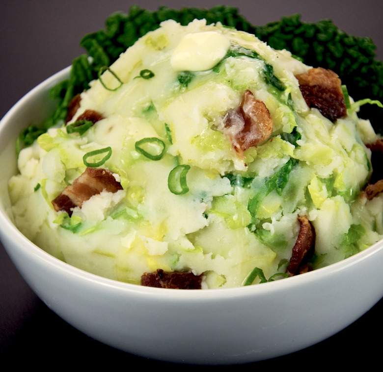Colcannon is a lad's best friend, along with whiskey, drinking songs and other fun Irish stereotypes. It combines traditional mashed potatoes with leftover vegetables and bacon to create a hearty, comforting and extremely filling dish. Pressed into patties, lightly floured and pan-seared, it's known as "bubble and squeak," due to air noisily escaping from the dense potato mixture as it cooks.