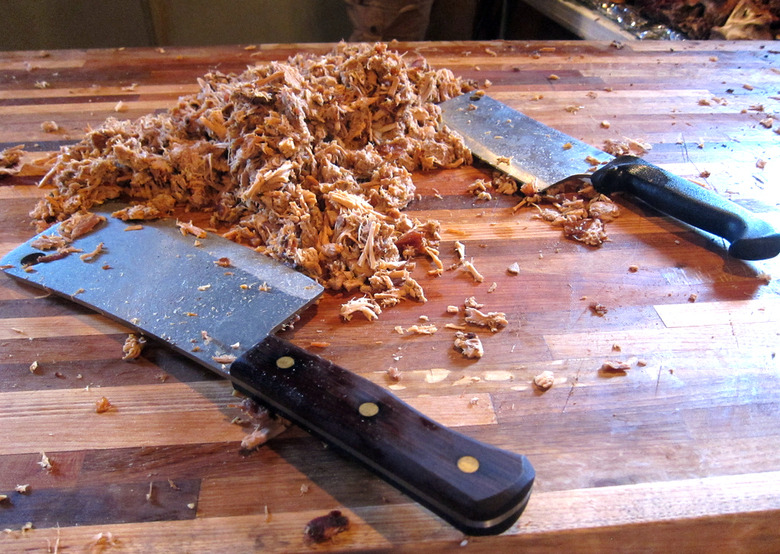 These early hogs had not yet been bred to be the tender pigs — which troublingly became "the other white meat." Clever Carolinians turned to a mop sauce of vinegar and peppers to help tenderize the meal and learned to cook it low and slow to break down the sinews. In Eastern North Carolina, they became so enamored of the characteristics imparted by the vinegar sauce that it became the proud basis of their flavor profile. Farther to the west, tomatoes were added to the vinegar sauce; but any red tinge in an Eastern Carolina sauce comes from red peppers. As an aside there is also quite a coleslaw war brewing between the regions, but we'll save that for Food Republic's "Year of Cabbage" series that I'm sure no one will ever write.