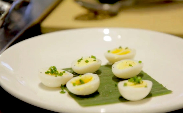 We're so crazy about the spicy rock shrimp and grits at NYC's East Village Singaporean spot du jour, Masak, that we borrowed the recipe to share with you. But Food Republic, you ask, what about the quail egg garnish? The recipe does indeed call for 2 boiled, peeled and halved quail eggs. It occurred to us: does anyone know how to boil a quail egg properly? Regular hard-boiled eggs are confusing enough if you haven't read our comprehensive guide on how to hard-boil eggs. So we went back to Masak to ask Chef Larry Reutens exactly how he pulls off this awesomely tiny, yet impressive garnish.