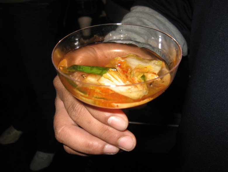 Kimchi and booze: not that you should be drinking at lunch, but it's worth it to mention that floating a chunk of kimchi in a shot of vodka (or soju, if you're keeping it real) could very well be the new pickleback.
