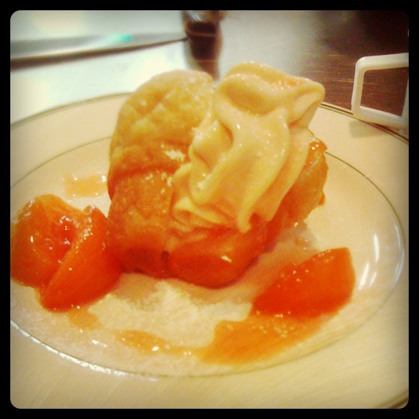 Jack Daniels Baba with Peach Soft Serve @allaspinaphilly Forget food porn this is masturbaking. [/caption]