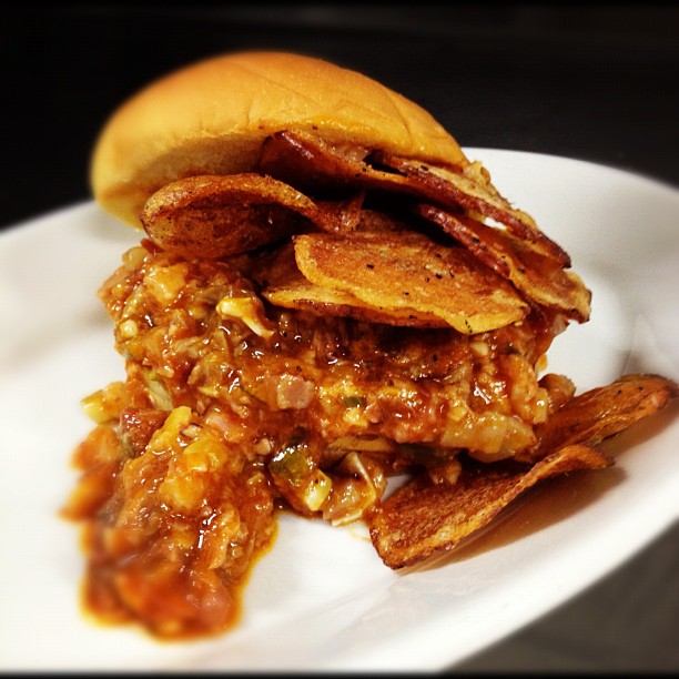 Pig's head Sloppy Joe with salt & pepper chips. Amis Industry Night. @foodsyoucaneat[/caption]