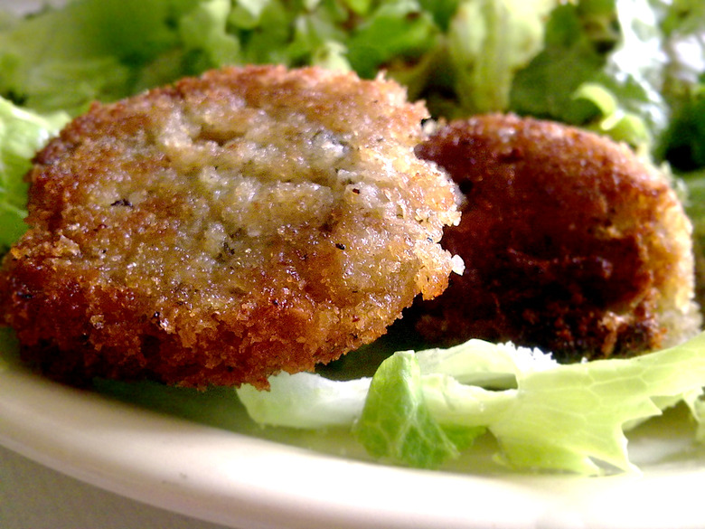 These croquettes make an awesome bed for a poached egg or half-assed rosette of smoked salmon, especially if your risotto had pancetta in it (which it should have) and they're pretty good at room temperature or even cold. The last time I made these, I sandwiched a thick slice each of mozzarella and juicy summer tomato between two arancini croquettes with a little pesto. Italian overload.