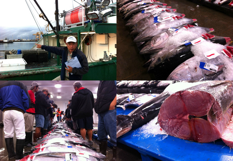 Prices for the fish start at 10 cents a pound and go all the way up to this year's record of $24.50 for #1 ahi, a.k.a. the good stuff. The auction setting actually benefits both the seller and the buyer because the market determines fair value for every fish. "It's like playing poker," Kaneko says. "If you only play when you have a good hand, you'll never win." It may help to think of this as Storage Wars with tuna.