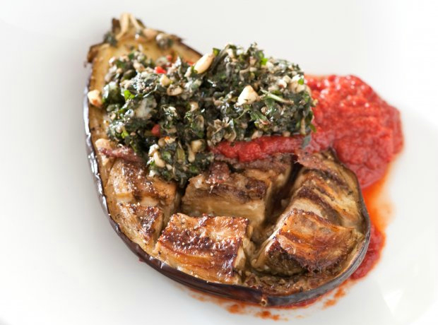 3. Smoked eggplant salad: toss with pine nuts, currants, tomato & fresh herbs.