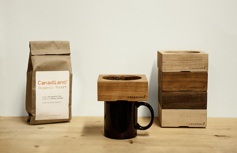 Do you prefer the intense, complex flavor of a pour-over cup of coffee, but the plastic and metallic devices conflict with your heightened sensibilities? It's ok to be a coffee snob and a design snob (at least within the Food Republic). And fortunately, someone has developed a more palatable option. Introducing the Canadiano, a wood-carved block for single pour-over servings.