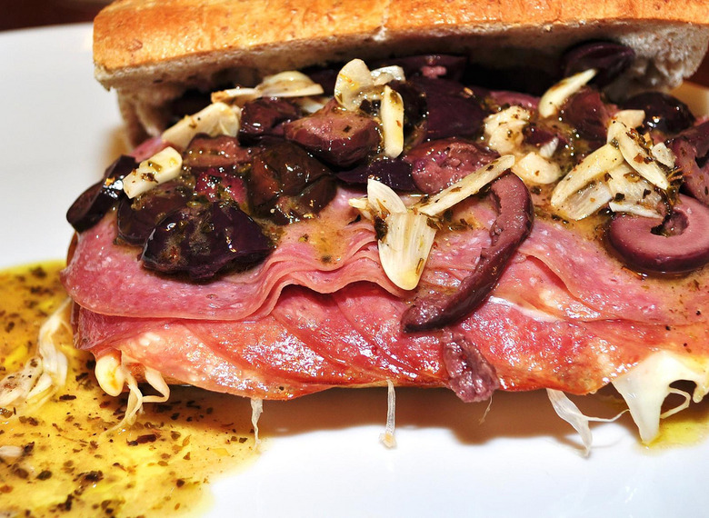 One sandwich comes to mind if it's vinaigrette we're discussing: the Italian Combo. The oregano-infused red wine vinaigrette squirted liberally on the roll before loading on cold cuts provides the perfect tangy contrast to the rich cured meats and complements the lettuce, tomato and red onion. That said, experiment with variations, switching up the type of vinegar, fresh herb and "extras" until you find the sandwich vinaigrette for the finishing touch on a monster sub. That potato salad vinaigrette does a nice job, too, and depending on what kind of cheese you're using, enlist that mashed-up fruit vinaigrette for substantial flavor enhancement.