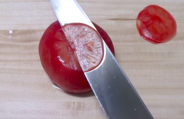 Video: Sashimi Knife Vs. Tomato. Fight!