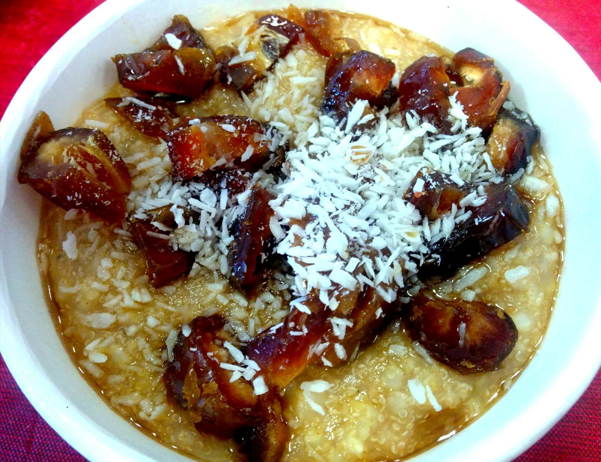 Amaranth millet porridge with dates, coconut and raw toffee at Brooklyn Porridge Co.