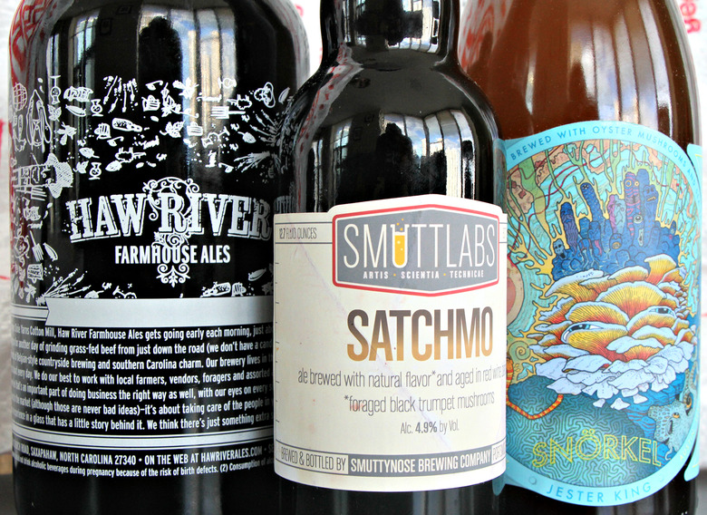 Chanterelles are commonly used for the light apricot aromas and slightly buttery texture they impart to the beer, a characteristic both R&B Brewing Company in British Columbia and Scratch Brewing Company in Illinois sought out for their German-style wheat ale and saison, respectively. Sierra Nevada experimented with shiitake mushrooms in a beer called Fungoo during one of their Beer Camps, and Dogfish Head once worked portabellos into a stout for a mushroom festival in Pennsylvania. Other atypical mushrooms like reishi and maitake bring the funk in Haw River Farmhouse Ale's American Brown Ale. And Uncommon Brewers in Santa Cruz say the pungent Candy Cap variety adds an unmistakable maple syrup-like flavor to their Rubidus Red Ale.