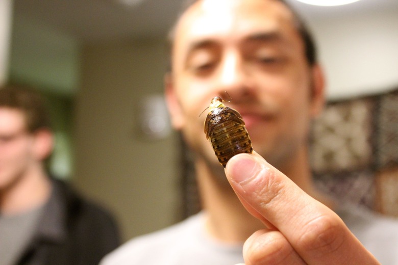 "Eating cockroaches was necessary, because at some point you get bored eating just crickets and worms every day," he says. "You need to switch it up." The roaches proved to be an interesting alternative. "It's confusing because it felt gross, but it tasted good," he says with a laugh. "No one's really a big fan of cockroaches." It took him three days to find the courage to eat the roaches, which he sourced from a farmer in Oregon. (While roaches might be a familiar sight in the stereotypically slobby environs of student housing, insect gourmands prefer to source "food-grade" specimens from legitimate commercial producers.) He and a friend prepared the roaches by sautéing them with rosemary, thyme, garlic, onion and mushrooms.