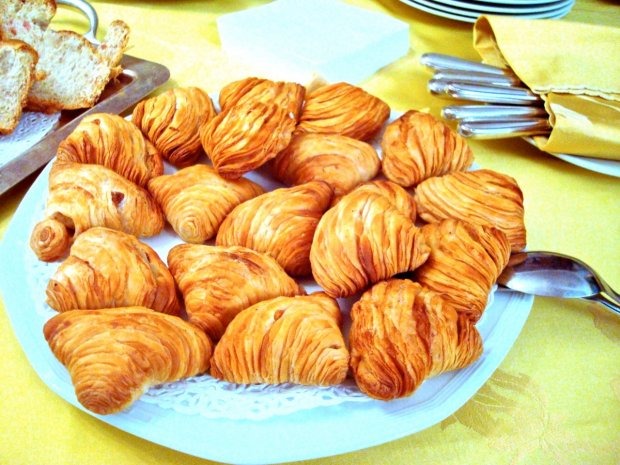For dessert, have the star of Mario Scarturchio's eponymous pasticceria. Sfogliatelle is a stuffed shell-shaped pastry constructed of thin layers of dough, like a millefeuille. Usually dusted with powdered sugar, it flakes when you bite into it. Bliss.[/caption]