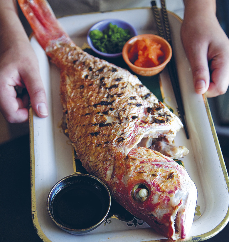 Salt-grilled whole red snapper with Ponzu, simple and elegant, is a signature dish of Japanese cuisine. Grilling the fish with the bones intact adds flavor, succulence and juiciness to the flesh. If you prefer, you can cut off the head, but we love its tender parts, including the cheek and the insides. You can also use this grilling technique with whole sea bass, bronzini, sea bream, porgy, small grouper, dorade (also called Mediterranean sea bream) or other white fleshed fish.